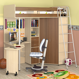 Популярная модель, которая особенно подойдет для небольших по площади детских комнат. Благодаря предусмотренному в ее конструкции вместительному отделению, она с успехом заменит полноценный шкаф для хранения детских вещей, постельного белья и др. Получить доступ к нему можно, подняв матрас.